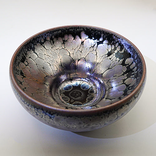 The Handcrafted Magnolia General's Cup, a Tenmoku Tea Bowl and JianZhan Teacup, is a remarkable fusion of traditional Chinese artistry and contemporary design. Perfect for both daily use and special tea ceremonies, the Handcrafted Magnolia General's Cup, or Tenmoku Tea Bowl, is both a functional piece and a beautiful work of art, making it a cherished addition to any tea enthusiast's collection. Each tea bowl is meticulously handcrafted from high-quality Jian ware clay, featuring a stunning glaze that creates a unique, elegant Magnolia pattern. This intricate design not only enhances the bowl's aesthetic appeal but also adds a touch of sophistication to any tea-drinking experience.